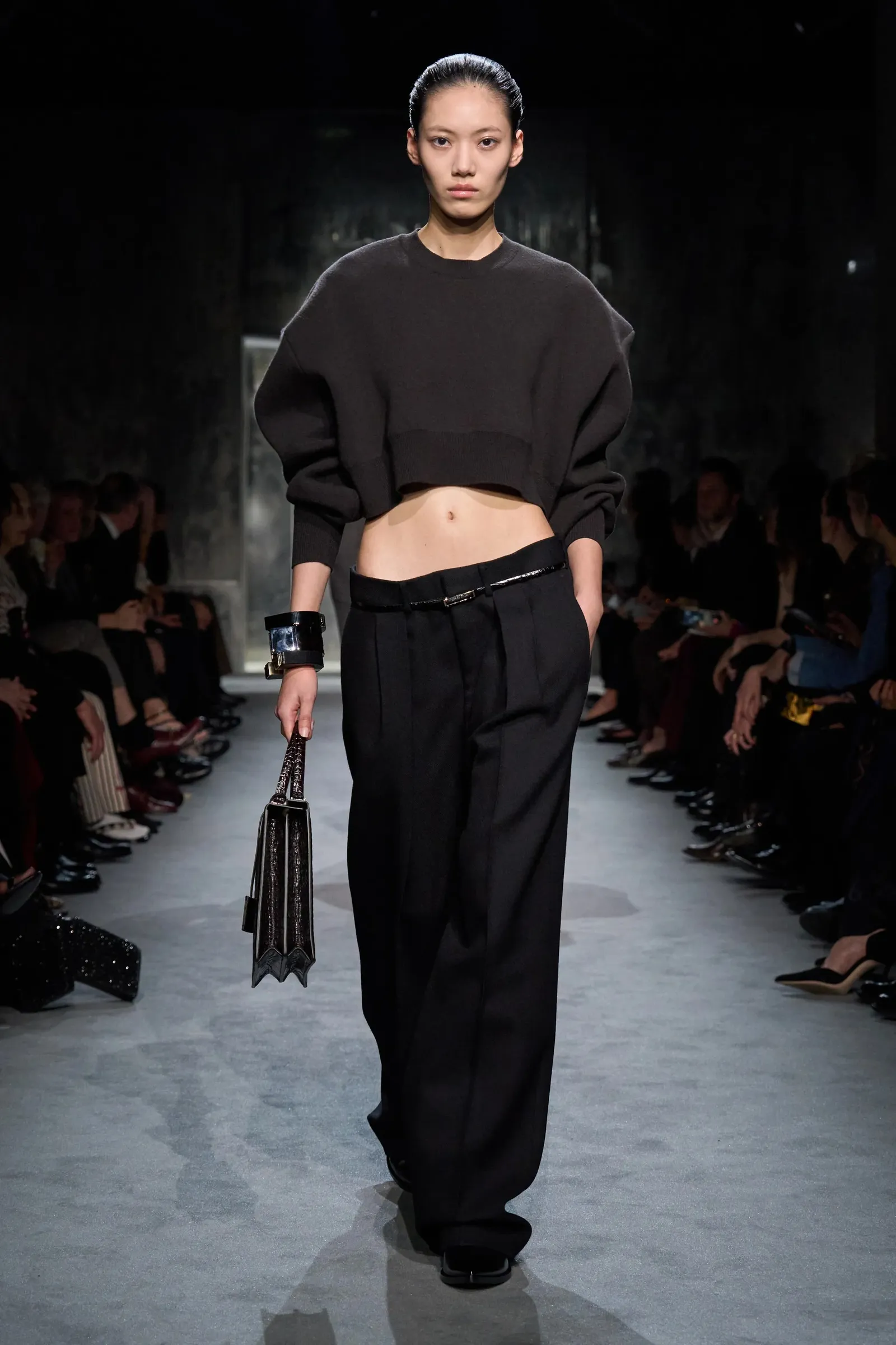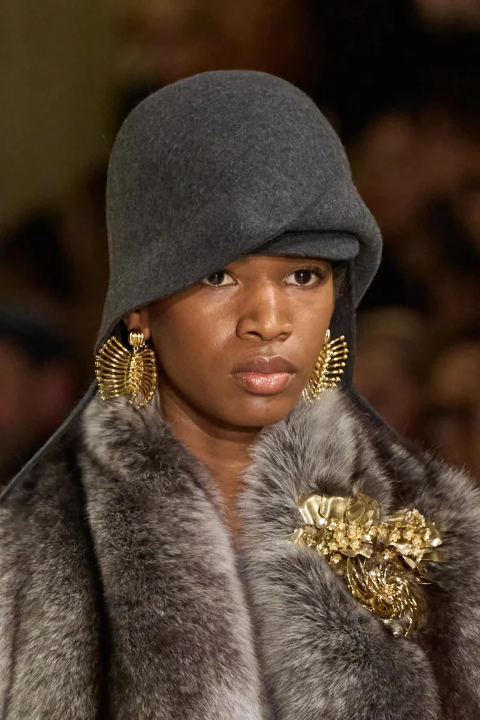 На подиумах Алайя (Alaïa) и Сен-Лоран (Saint Laurent) царила энергия крупных серёг — оба бренда ярко заявили о серьгах «посмотри-на-меня», с насыщенной текстурой и выразительными формами. Эхо экспериментальной работы с тканями, которую Питер Мулье исследовал в коллекции prêt-à-porter, продолжилось и в сферических серьгах первой марки. А у второй Энтони Ваккарелло обрамил лица моделей гигантскими серьгами — вместо сумок.