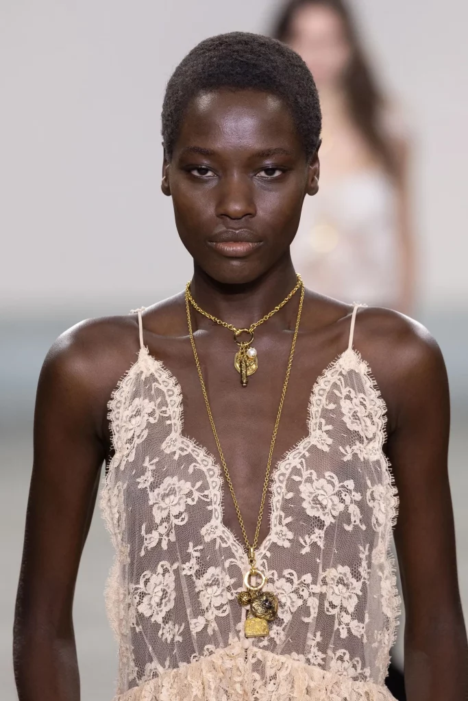Многослойные бохо-кулоны, выглядящие так, словно их только что нашли на блошином рынке, стали ключевым ювелирным посланием Клое (Chloé), вдохновив тех, кто ищет что-то новое — но не новое. «В каком-то смысле женский гардероб естественным образом развивается со временем. Он не курируется. Вы покупаете вещи на протяжении жизни, коллекционируете их, храните, отдаёте, а иногда заново открываете», — отметила креативный директор Шемена Камали, говоря о своём новом видении дома. (Некоторые из самых легко воспроизводимых ювелирных трендов осень/зима 2025 вдохновлялись именно антикварными сокровищами.)