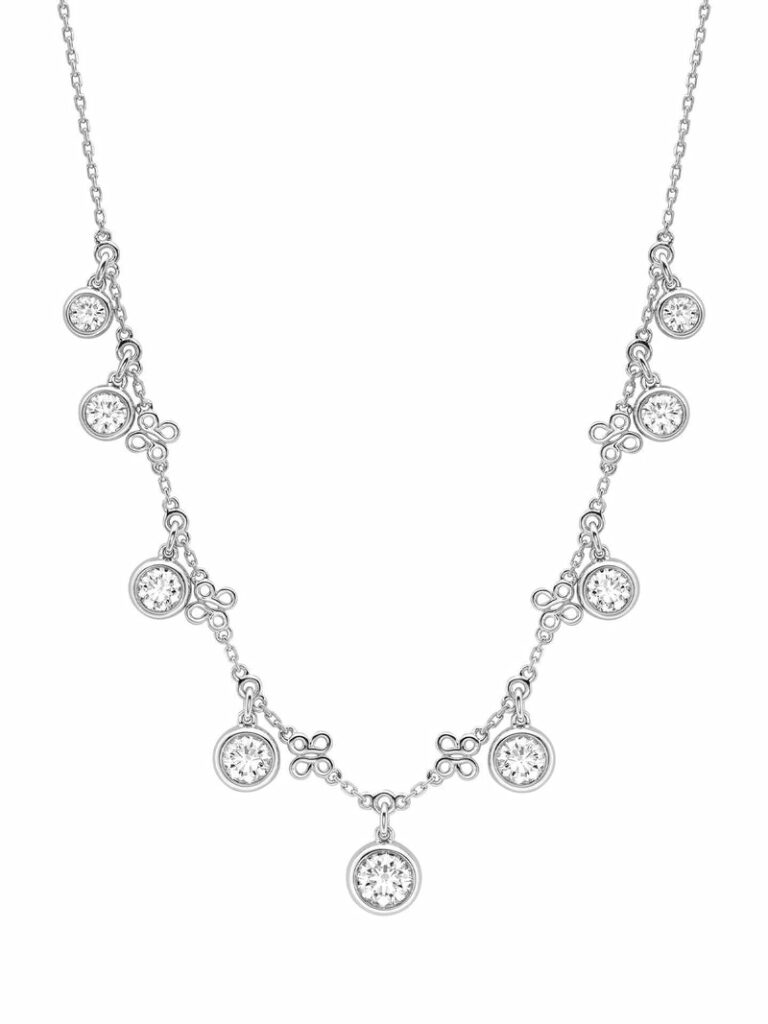 В комплект ожерелья входят бриллианты классической огранки из платины, общий вес основных бриллиантов составляет 3,56 карата.