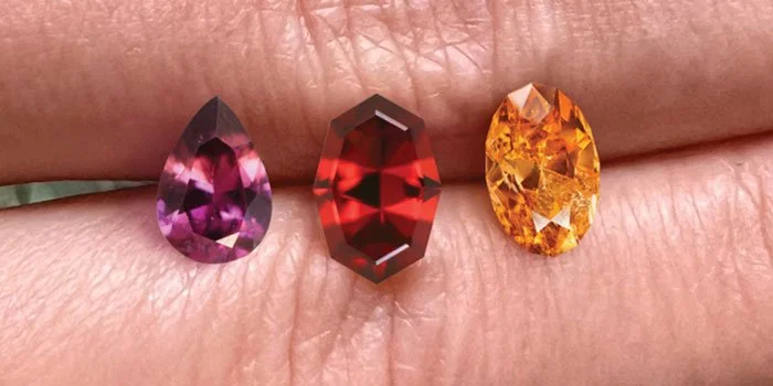 Редкие гранаты, такие как мандариновый (оранжевый), цаворит (зелёный) и особенно демантоид — ценятся за яркий блеск, сопоставимый с бриллиантами.