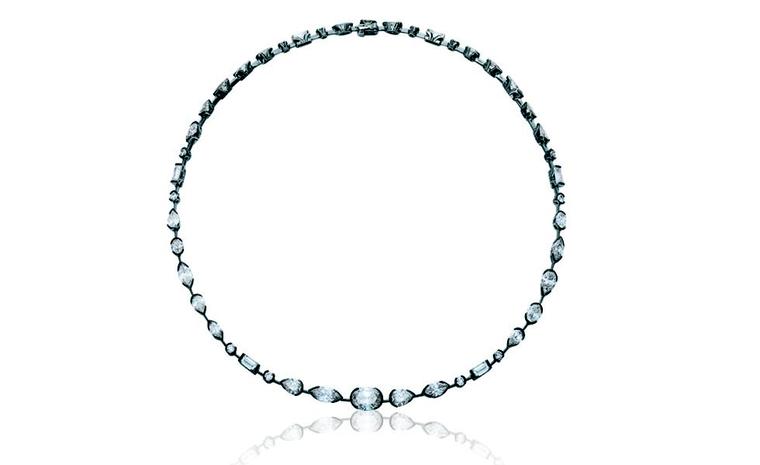Такие бриллианты называются «бриллиантами с характером», и обычно они не поступают на рынок, поскольку никогда не бывает двух одинаковых, поэтому их трудно продать». Мне нравится, как Кано использовала тонкие граненые бриллиантовые бусины в верхней половине одного колье. Это придает колье большую гибкость, а также менее формальный вид, чем бриллианты в оправе, идущие по всей шее.
