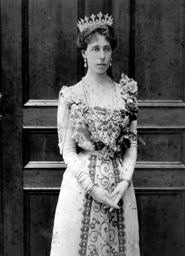 Элис привезла бриллиантовую тиару в свой новый дом, в немецкое великое герцогство Гессен-Дармштадт, где её часто изображали в этом украшении. Она также возвращала тиару в Англию для семейных торжеств. Вот её портрет, сделанный во время празднований свадьбы её брата, будущего короля Эдуарда VII, в 1863 году — там она позирует в этой тиаре.