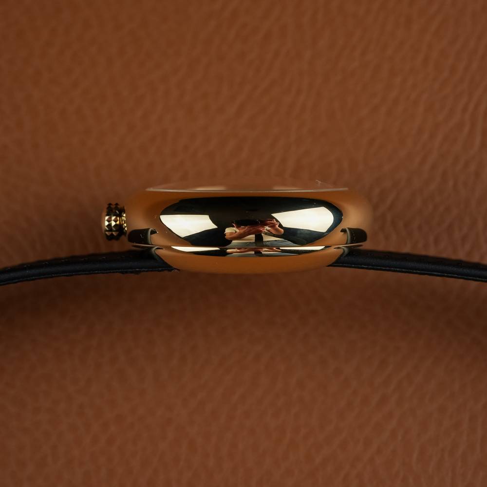 Корпус39 мм × 12,2 мм (без стекла), форма «галька», 18к жёлтое золото, полированный